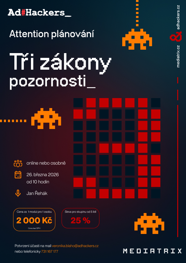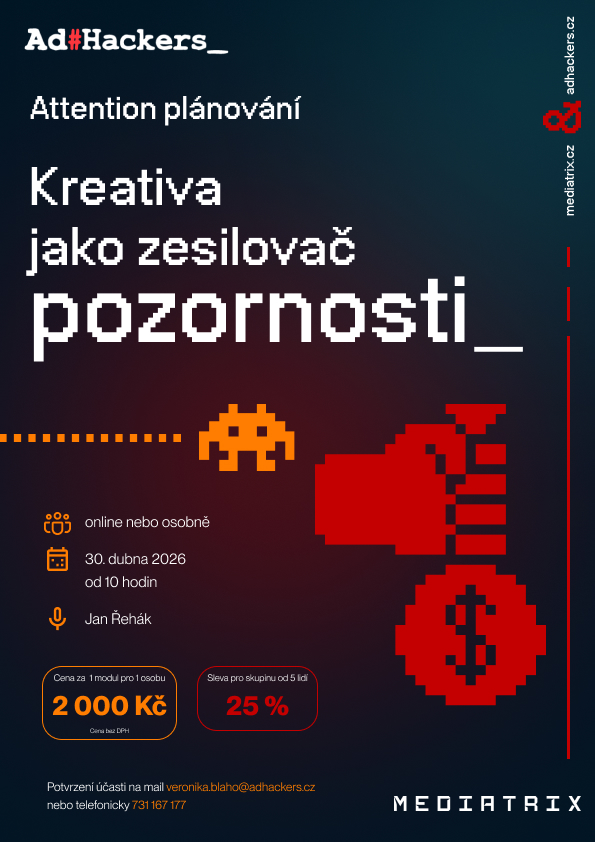Praktická, daty podložená a aktuální – školení marketingové komunikace, která vám ukážou, jak funguje reklama, kreativita, mediální plánování, strategie i vyhodnocování účinku marketingových investic v praxi.
